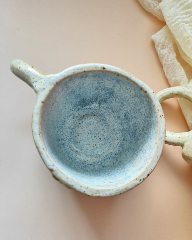Kubek jest wygodny, dobrze wyważony, z mocnym uchem. Szkliwiony wewnątrz i na zewnątrz (z matowym, nieszkliwionym spodem), przystosowany do zmywarki.