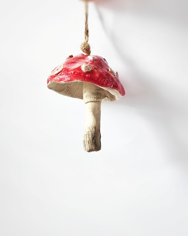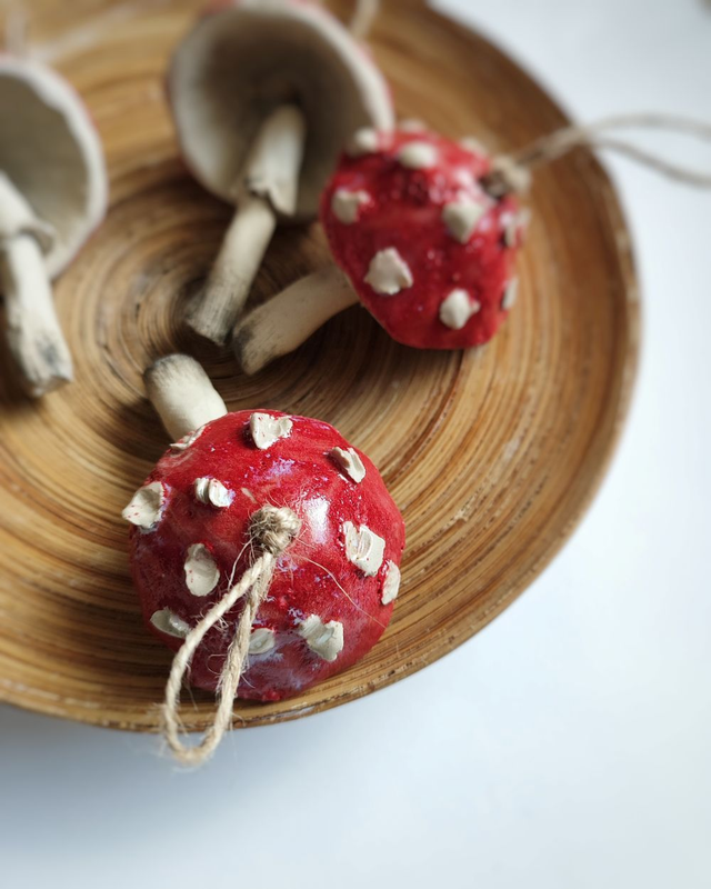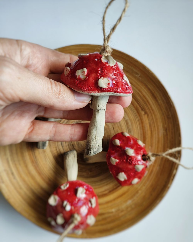 Urocze ceramiczne muchomorki w klasycznym czerwonym kolorze to wyjątkowe ozdoby inspirowane naturą. Każdy grzybek został ręcznie uformowany i szkliwiony, dzięki czemu różnią się od siebie subtelnymi detalami.