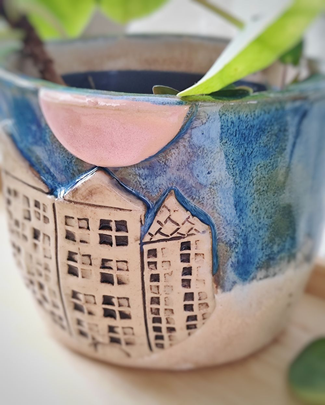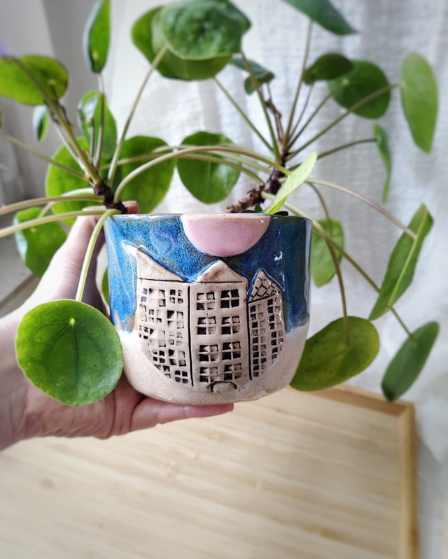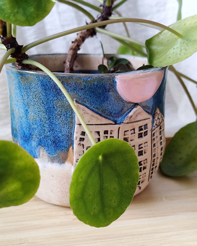 Powstała w jednym, unikatowym egzemplarzu. Wykonana całkowicie ręcznie w kolorach: granatowy, nakrapiany