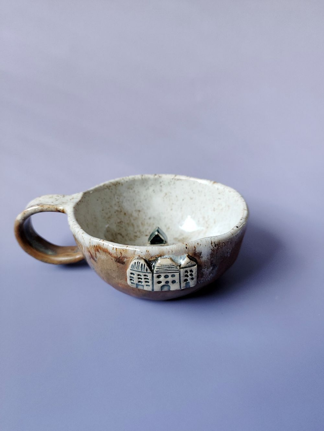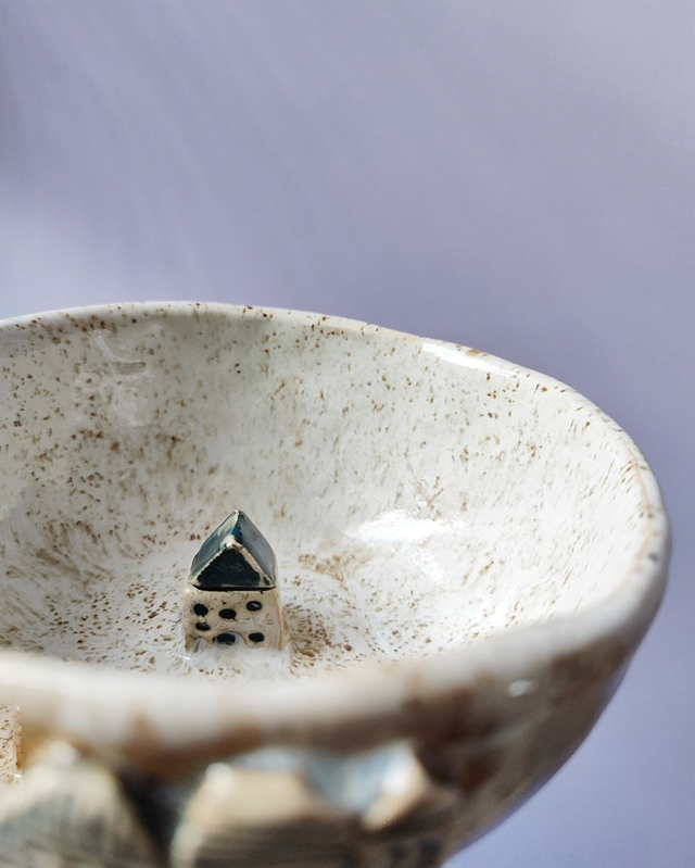 Filiżanka z domkiem w środku to połączenie prostoty i magii zaklętej w glinie. Jej powierzchnię zdobią maleńkie domki – symbol spokoju, ciepła i codziennych rytuałów.